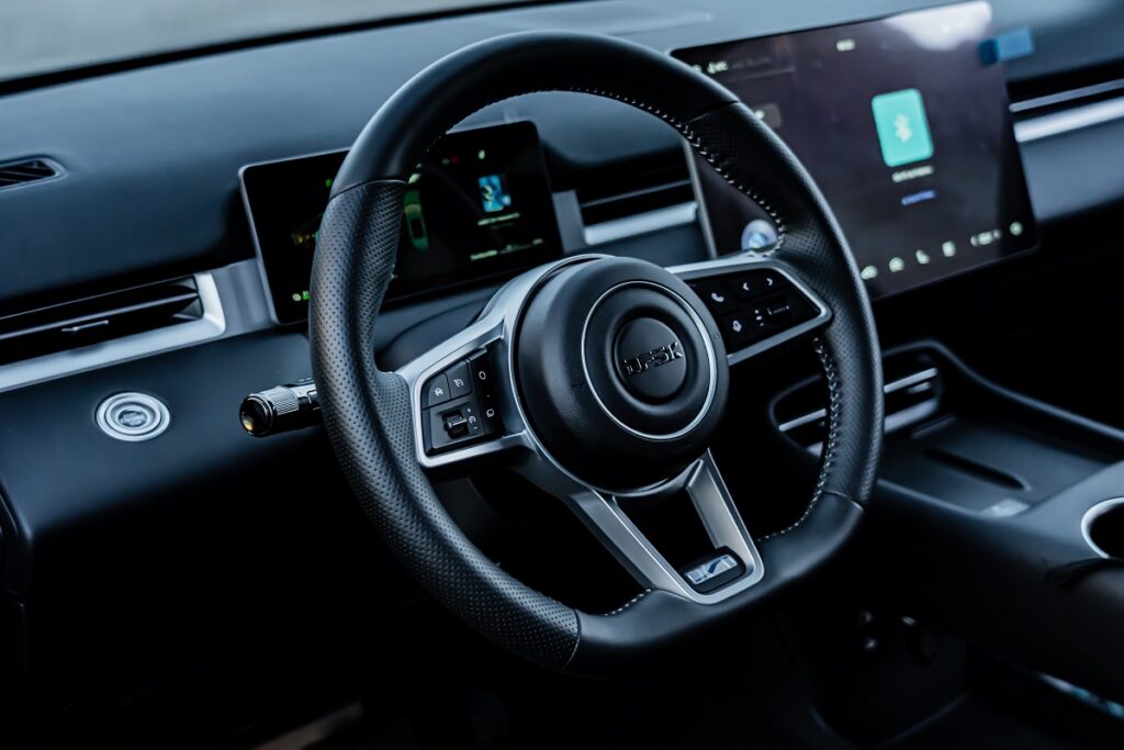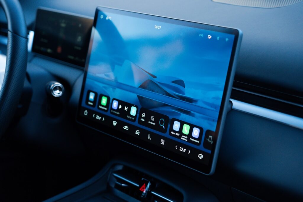 El E5 Plus incorpora una gran pantalla multimedia táctil de 15,6”, acompañada de un panel de instrumentos digital, compatibilidad con Apple CarPlay inalámbrico, y Android Auto con conexión ZLink, cargador inalámbrico para dispositivos móviles y un sistema de audio envolvente con 13 parlantes.