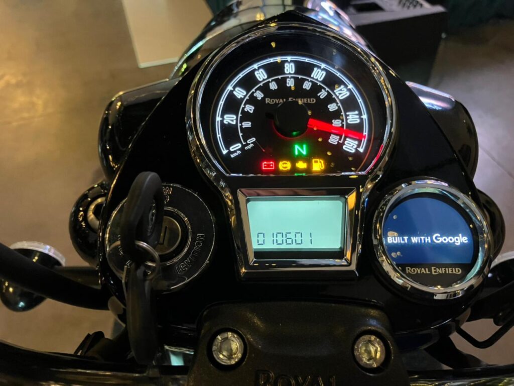 En el tablero de instrumentos, conviven un velocímetro convencional en la cúspide con una pantalla LCD digital, que despliega el nivel de combustible, el odómetro y la marcha engranada, entre otros datos. También cuenta con un navegador (Tripper), compatible con el ecosistema de Google.